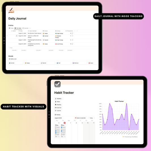 Our template is specifically designed to address common ADHD challenges such as organization, focus, and time management. With features like habit tracking, a daily journal, and task management, it provides structured support to help you stay on track and achieve your goals.