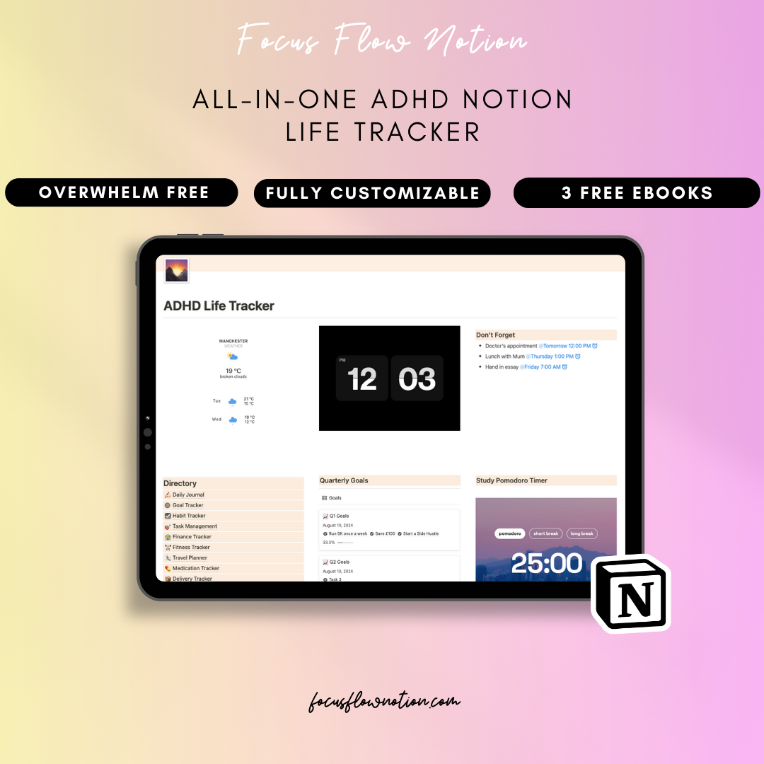 All-In-One ADHD Notion Life Tracker Template + 3 Free E-Books!