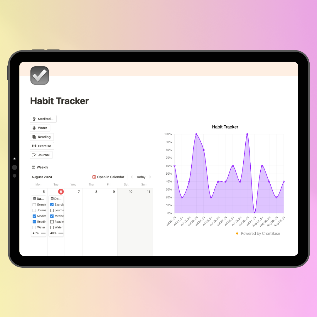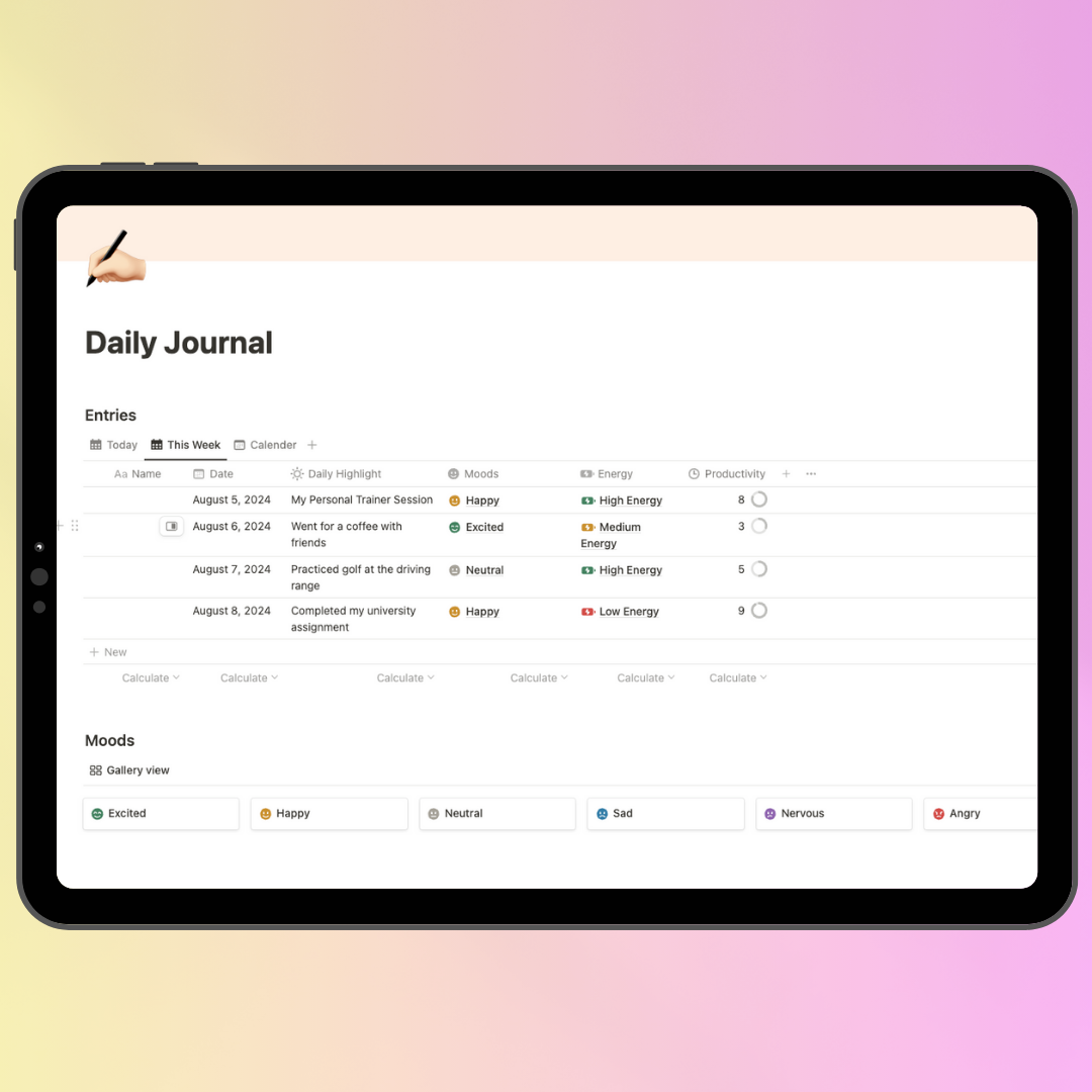 Our template is specifically designed to address common ADHD challenges such as organization, focus, and time management. With features like habit tracking, a daily journal, and task management, it provides structured support to help you stay on track and achieve your goals.
